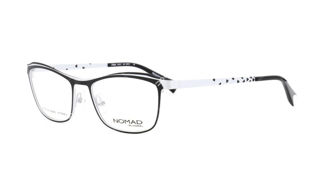 عینک طبی بسیار زیبا نوماد مدل NOMAD 40039N یکی دیگر از محصولات شرکت مورل می باشد. این عینک طبی جدید با ترکیب رنگ سیاه و سفید و همچنین فریم گربه ای شکل یکی از جدیدترین فریم های عینک طبی 2019 می باشد.همیشه رنگ سیاه و سفید برای افراد جذابیت داشته است و طراح با هوشمندی این ترکیب را کنار هم قرارداده است که خانم خوش سلیقه هرچه بیشتر جذب این فریم طبی شوند.