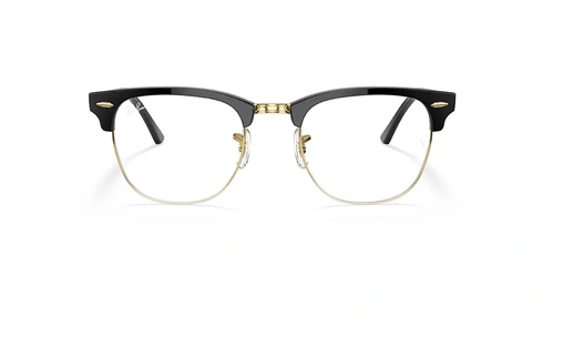 عینک ری بن فریم کلاب مستر کائوچویی فلزی رنگ مشکی براق و فلز طلایی و عدسی بلو لایت و uv400 - عکس از زاویه روبرو