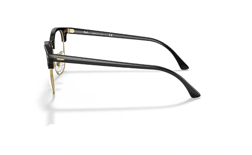 عینک ری بن فریم کلاب مستر کائوچویی فلزی رنگ مشکی براق و فلز طلایی و عدسی بلو لایت و uv400 - عکس از زاویه نیم رخ