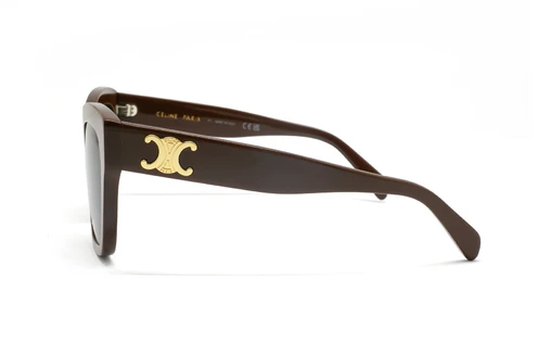 عینک آفتابی سلین مدل Triompheبا فریم پروانهای استات در رنگ قهوهای شکلاتی و عدسیهای قهوهای طیف دار انتخابی خاص برای خانمهای مدرن است. لوگوی طلایی Triomphe روی دستهها، هویت باشکوه پاریسی سلین را بازتاب میدهد و جلوهای منحصربهفرد و لاکچری به این مدل میبخشد. مناسب برای استایلهای روزمره و رسمی.