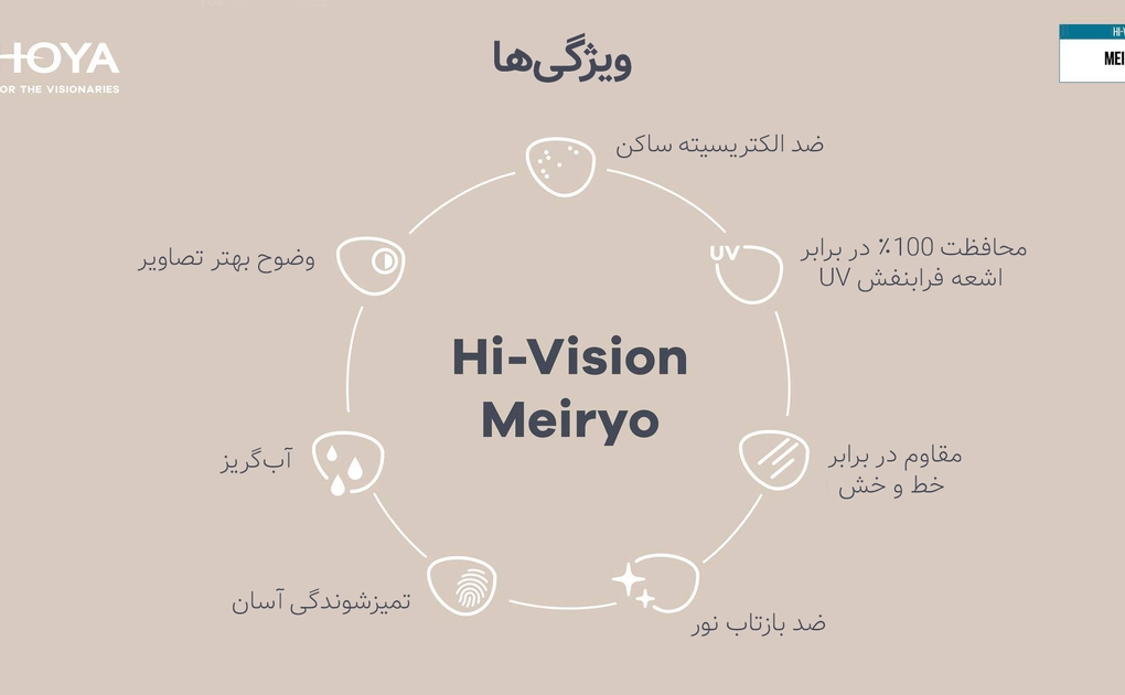 عدسی هویا 1.60 با پوشش Mieryo