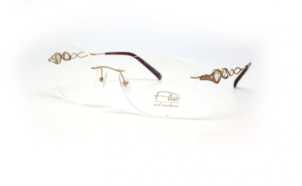 یک آکسسواری زنانه زیبا و جسورانه که زیبایی اش شما با آن در جمع ها درخشان تر و جذاب تر ظاهر می شوید یک یدیگر از عینک های گریف مجموعه ART COUTURE که از تیتانیوم و حدقه های گریف ساخته شده است که در آن از تکنولوژی خالص یا Pure Technology به کار گرفته شده است. این تکنولوژی ثبت اختراع جهانی شده است. این تکنیک مونتاژ ثبت شده همه چیز دارد. عینک های گریف یا frameless به جای استفاده از پیچ، مهره و یا لولا، عدسی ها با یک نخ نامرئی یا نخ گریف که تنها 4/0 میلی متر ضخامت دارد وصل می شوند. برای انجام این کار تنها به یک گره مخصوص نیاز است که مسلما کاملا فکر شده می باشد و دقت بالایی نیاز دارد. تکنولوژی خالص عملی است که FLAIR از آن برای تولید فریم تمام گریف خود استفاده می کند. این فریم که می بینید دسته هایش ترکیبی از تیتانیوم طلایی با نگین های ریز و درشت زیبا طراحی شده است و شکی شبیه به بافت یا گیس دارد. حدقه های گریف نسبتا گربه ای که برای انواع صورت ها مناسب می باشد و اگر به دنبال زیبایی و سبکی هر دو هم زمان هستید در انتخاب این عینک شک نکنید.