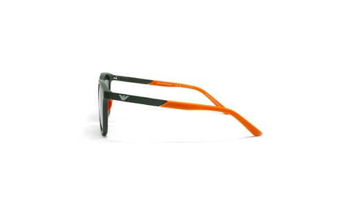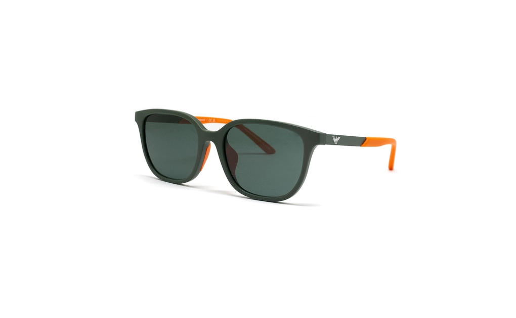 عینک آفتابی بچه گانه امپریو آرمانی فریم مربعی کائوچویی رنگ سبز با عدسی سبز و دسته فلزی سبز و نارنجی-عکس از زاویه کنار