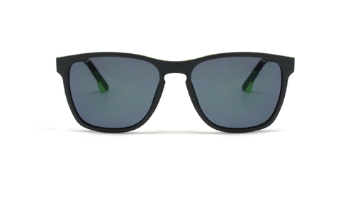 عینک آفتابی پلیس فریم کائوچویی مربعی مشکی و سبز فسفری و عدسی سورمه ای - عکس از زاویه روبرو