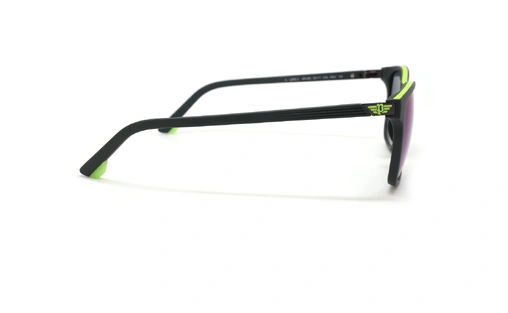 عینک آفتابی پلیس فریم کائوچویی مربعی مشکی و سبز فسفری و عدسی سورمه ای - عکس از زاویه کنار