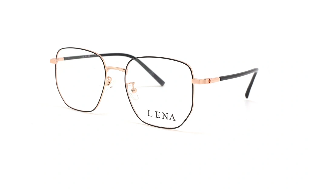 عینک طبی مربعی فلزی به رنگ مشکی طلایی که در فریم مربعی آن با کمی زوایا و خطوط شکسته شده است و در گوشه ها کمی متفاوت است. عینک ههای مربعی برای صورت های گرد،بیضی و قلبی شکل انتخاب بسیار مناسبی می باشد. و این عینک هیچ محدودیتی برای خانم ها و آقایان ندارد و شما می توانید این عینک را به راحتی با استایل های متفاوت ست بفرمایید.