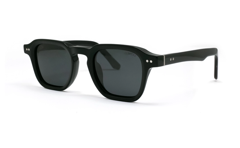 عینک آفتابی لومیر فریم کائوچویی مربعی ضخیم مشکی به همراه عدسی دودی-عکس از زاویه سه رخ