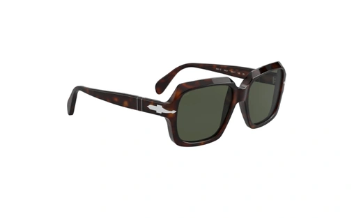 عینک آفتابی کائوچویی پرسول مربعی فریم قهوه ای هاوانا و عدسی مشکی- عکس از زاویه سه رخ
