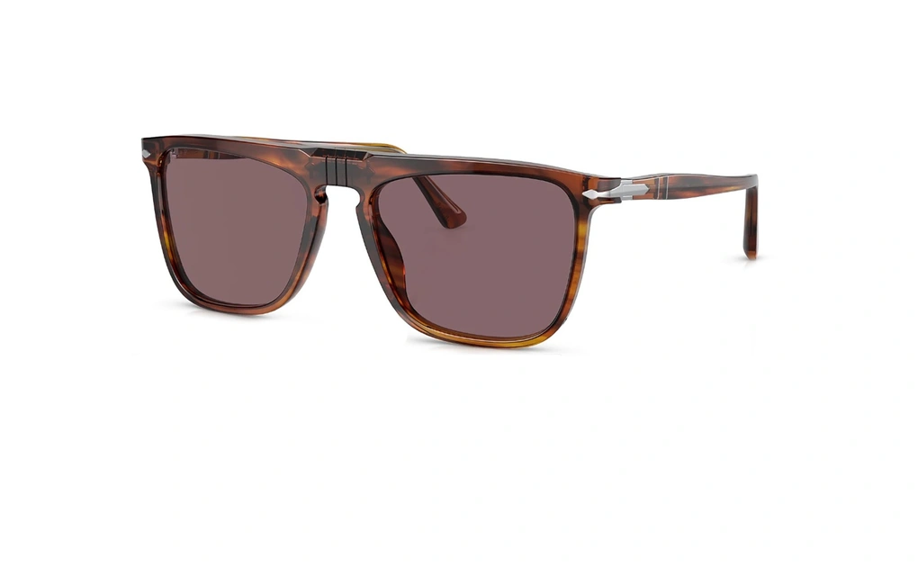 عینک آفتابی پلاریزه پرسول فریم کائوچویی مربعی رنگ قهوه ای هاوانا و عدسی بنفش پلاریزه - عکس از زاویه سه رخ