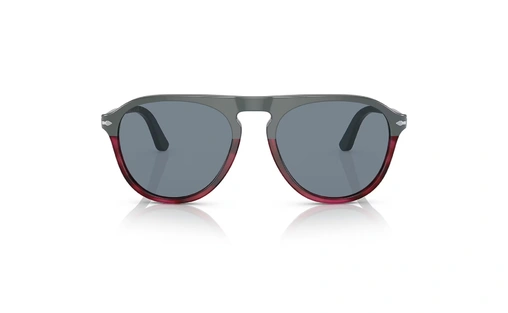 عینک آفتابی پرسول فریم استات مدل خلبانی دو رنگ طوسی- قرمز و عدسی آبی کمرنگ - عکس از زاویه روبرو