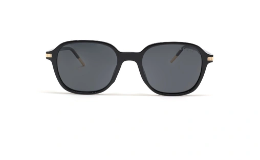 عینک آفتابی کائوچویی شبیه مستطیلی پلاریزه لنا فریم مشکی انتهای دسته طلایی عدسی مشکی - عکس از زاویه روبرو