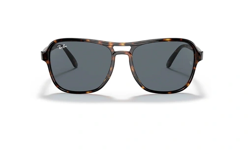 عینک آفتابی ری بن فریم کائوچویی خلبانی دو پل با حدقه مربعی به رنگ قهوه ای هاوانا و عدسی آبی خاکستری - عکس از زاویه روبرو