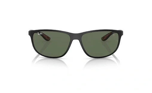 عینک آفتابی فراری ری بن فریم کائوچویی مستطیلی مشکی مات به همراه عدسی سبز - عکس از زاویه روبرو