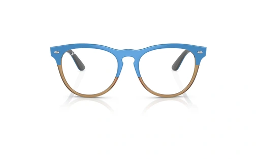 عینک طبی ری بن مدل آیریس فریم کائوچویی گرد دو رنگ آبی براق و قهوه ای عسلی - عکس از زاویه روبرو