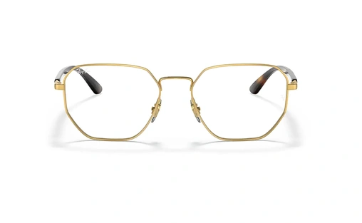 عینک طبی فلزی ری بن فریم چندضلعی رنگ طلایی با دسته های قهوه ای هاوانا - عکس از زاویه روبرو
