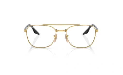 عینک طبی ری بن فریم فلزی دو پل رنگ طلایی دسته ها مشکی - عکس از زاویه روبرو
