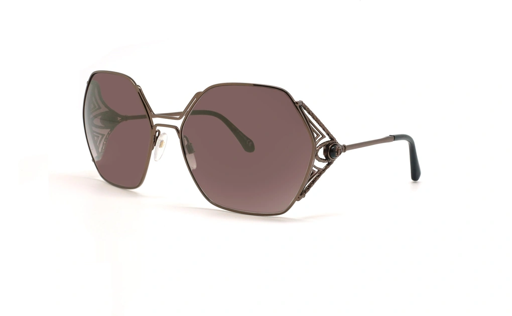 عینک آفتابی زنانه چند ضلعی روبرتو کاولی - ROBERTO CAVALLI RC1056 یک مدل خاص از عینک فلزی که در کالکشن 2019 عینک آفتابی روبرتو کاوالی مشاهده میشود. این مدل عینک بصورت چند ضلعی طراحی شده و از حدقه های بزرگ استفاده شده که بر روی صورت های بزرگ گرد یک شکل فوق العاده ای دارد. این مدل از عینک آفتابی مارکدار به رنگ قهوه ای است که بسیار مناسب پوست های روشن می باشد . این مدل از عینک آفتابی اصل بیشتر یک عینک رسمی است و خانم ها با استایل رسمی می توانند از این مدل استفاده کنند و بسیار شیک بنظر برسند. اگر به دنبال یک عینک خاص و با کیفیت و برند معتبر هستید حتما این مدل از عینک آفتابی به شما پیشنهاد می گردد.