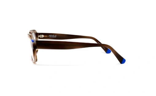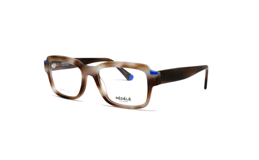 زیباترین رنگ ها در طراحی عینک را میتوانید از برند ردله تماشا کنید و بخرید. این مدل، فریم مستطیلی تمام کائوچویی نسبتا ضخیمی دارد که انتخاب رنگش باعث ویژه تر دیده شدن آن است. رنگ قهوه ای خاکی ابر و بادی که ترکیب رنگهای روشن و تیره را به نمایش می گذارد. فریم های مستطیلی برای صورتهایی به شکل بیضی و گرد مناسب ترین خرید عینک می باشند. همچنین در گوشه های حدقه ها دو تکه رنگ آبی معروف تمام فریم های ردله را میبینید که مطابق مد روز و با انواع تیپ ها همخوانی دارد.