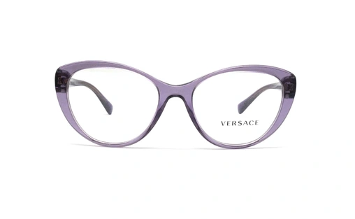 عینک طبی زنانه ورساچه فریم گربه ای بنفش روی دسته لوگو نگین کاری شده - عکس از زاویه روبرو