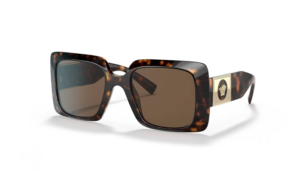 یک عینک مربعی بسیار چشمگیر و جذاب. رنگبندی هاوانا انتخابی بسیار مناسب برای این طراحی فوق العاده بوده است که با طرح مربعی شکل ورساچه با رنگ طلایی که روی دسته های آن کار شده جلوه ی بسیار زیادی به این عینک با اصالت بخشیده است.