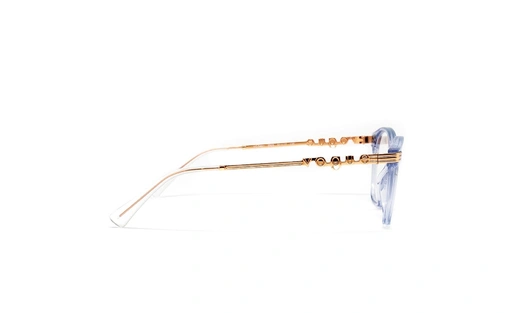 ترکیب فریم کائوچویی شیشه ای با دسته های فلزی که برند وگ به زیبایی روی آن نقش بسته این مدل را بسیار خاص و زیبا میکند. سبکی عینک همیشه برای افراد عینکی بسیار اهمیت دارد که در این مدل با در دست گرفتن آن این اهمیت را درک میکنید. از این مدل دو رنگ در فروشگاه وحدت موجود است که یکی به رنگ شیشه ای در کنار دسته های نقره ای و دیگری آبی روشن با دسته های طلایی که زیبایی آنها بی نظیر است.