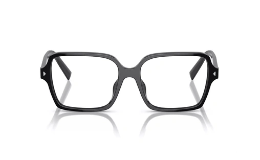 عینک طبی پرادا فریم کائوچویی مربعی باریک به رنگ مشکی براق - عکس از زاویه روبرو